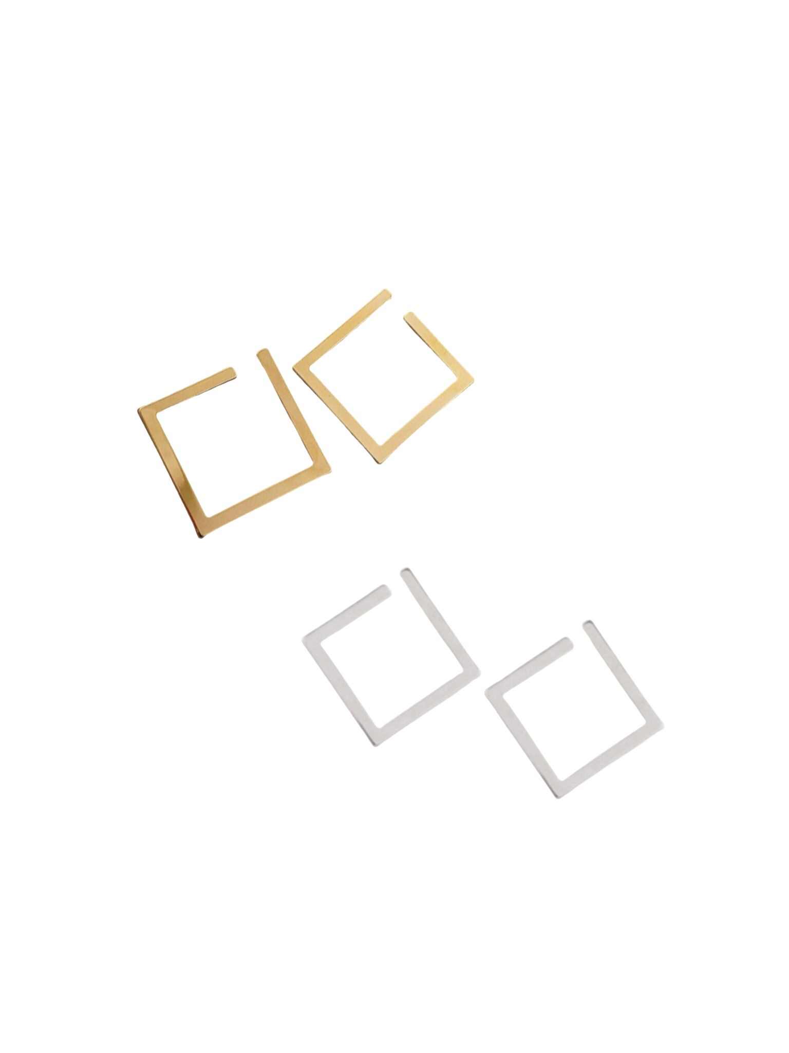シャープなラインが洗練された 印象を与えるスクエアフープピアス♫ 軽量でストレスフリーな着け心地ながら シンプルながらも存在感のあるデザインが特徴♡ ゴールドとシルバーの2色展開で カジュアルからフォーマルまで どんなコーデにもマッチし 耳元にモダンなアクセントをプラスします!