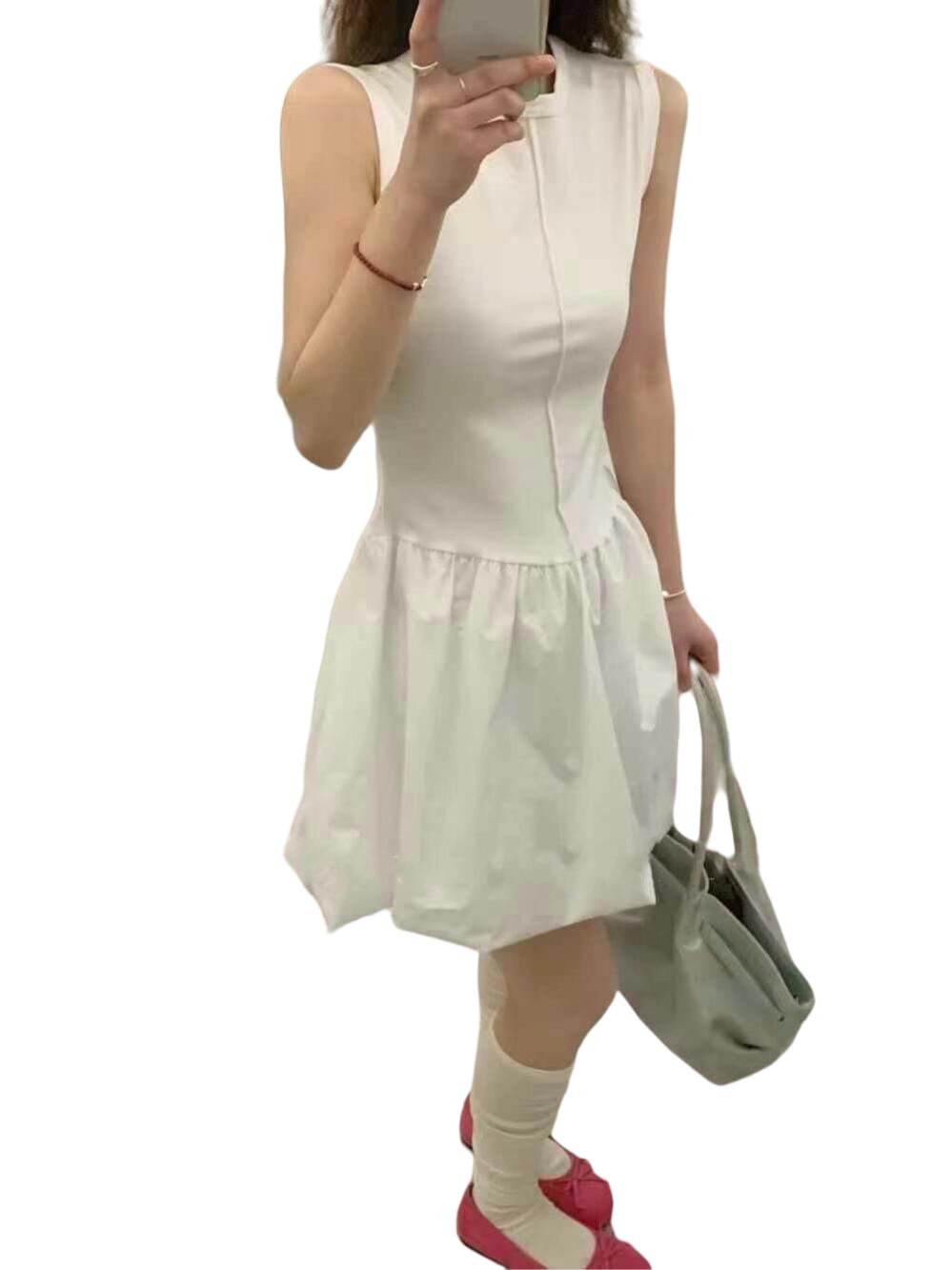 異素材切替バルーンタンクトップ