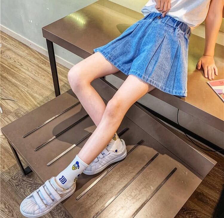かわいらしさと動きやすさが融合したデニムプリーツキュロットパンツ!