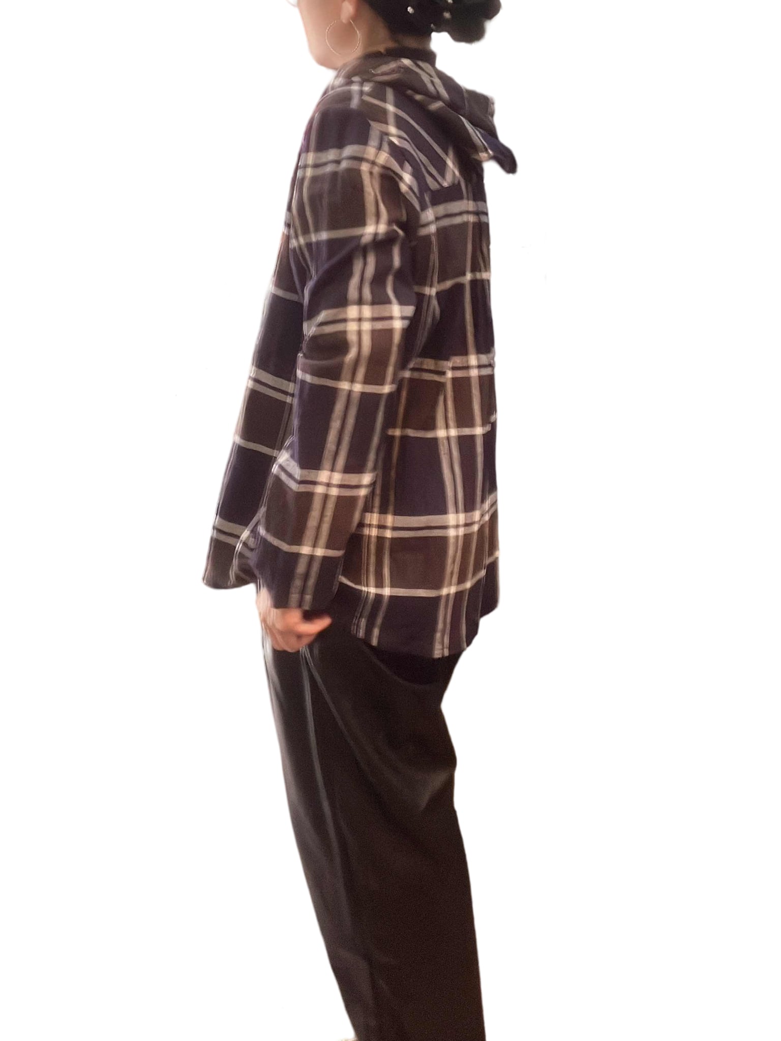 フード付きオーバーチェックシャツ