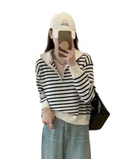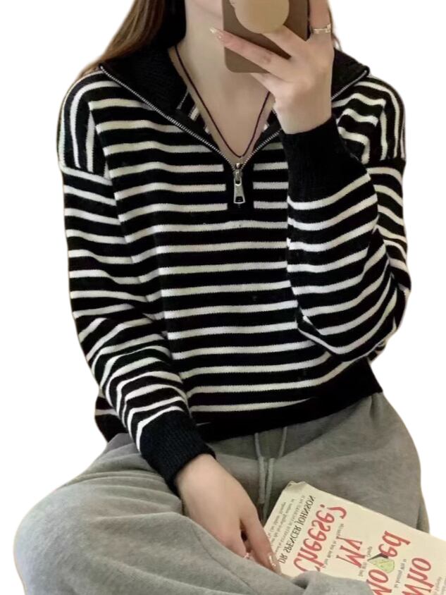 ハーフジップボーダーニット