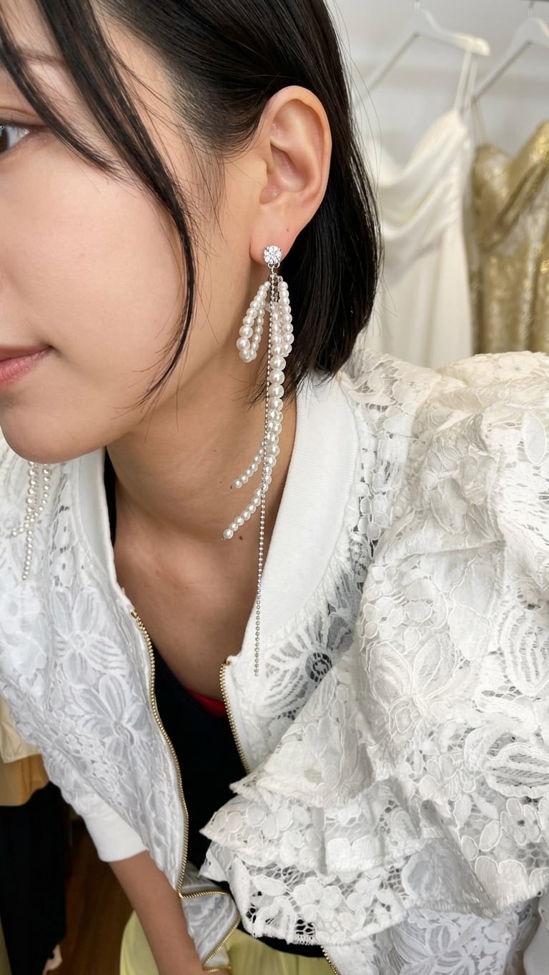 耳元に圧倒的な存在感♡ 繊細なパールと輝くビジュー そしてしなやかなメタリックチェーンを贅沢に束ねた トレンド感たっぷりのロングピアスです♫ 動くたびにシャラシャラと 揺れるリボンモチーフが お顔周りを一気に華やかに演出♡ 韓国ガーリーからモードなスタイルまで いつものコーデにプラスするだけで ワンランク上の「映え」スタイルが完成します♡