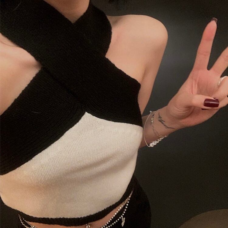 2wayバイカラーニットトップス