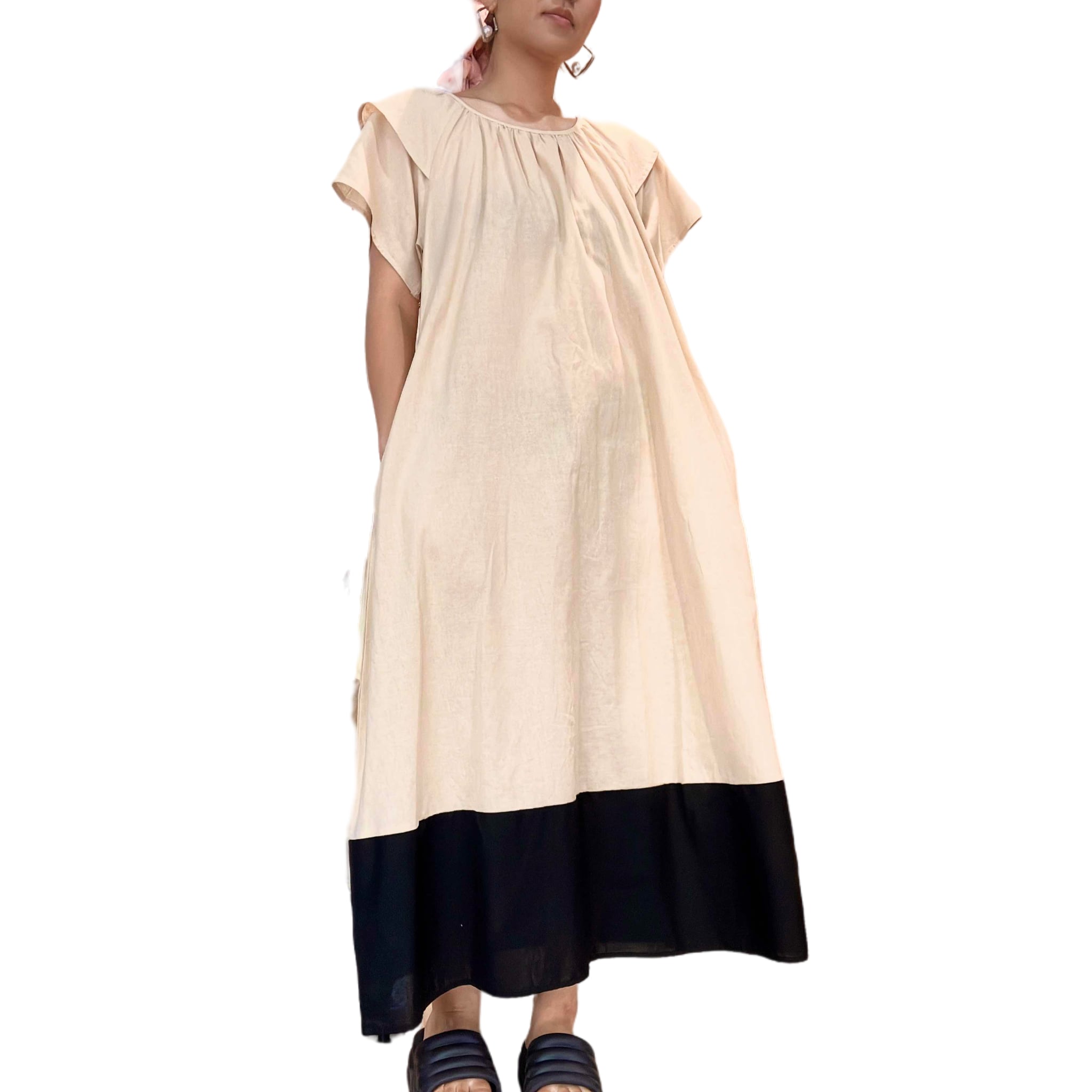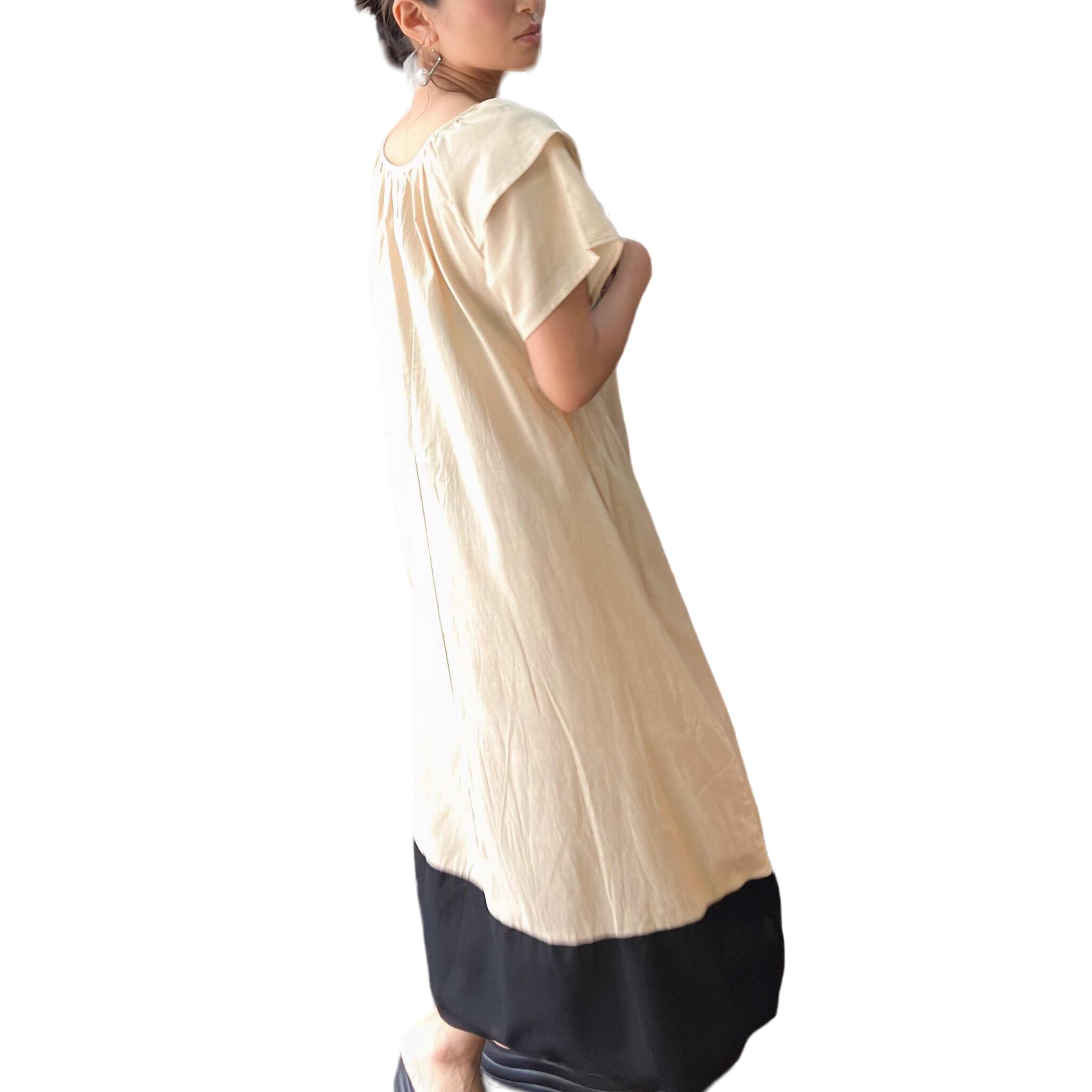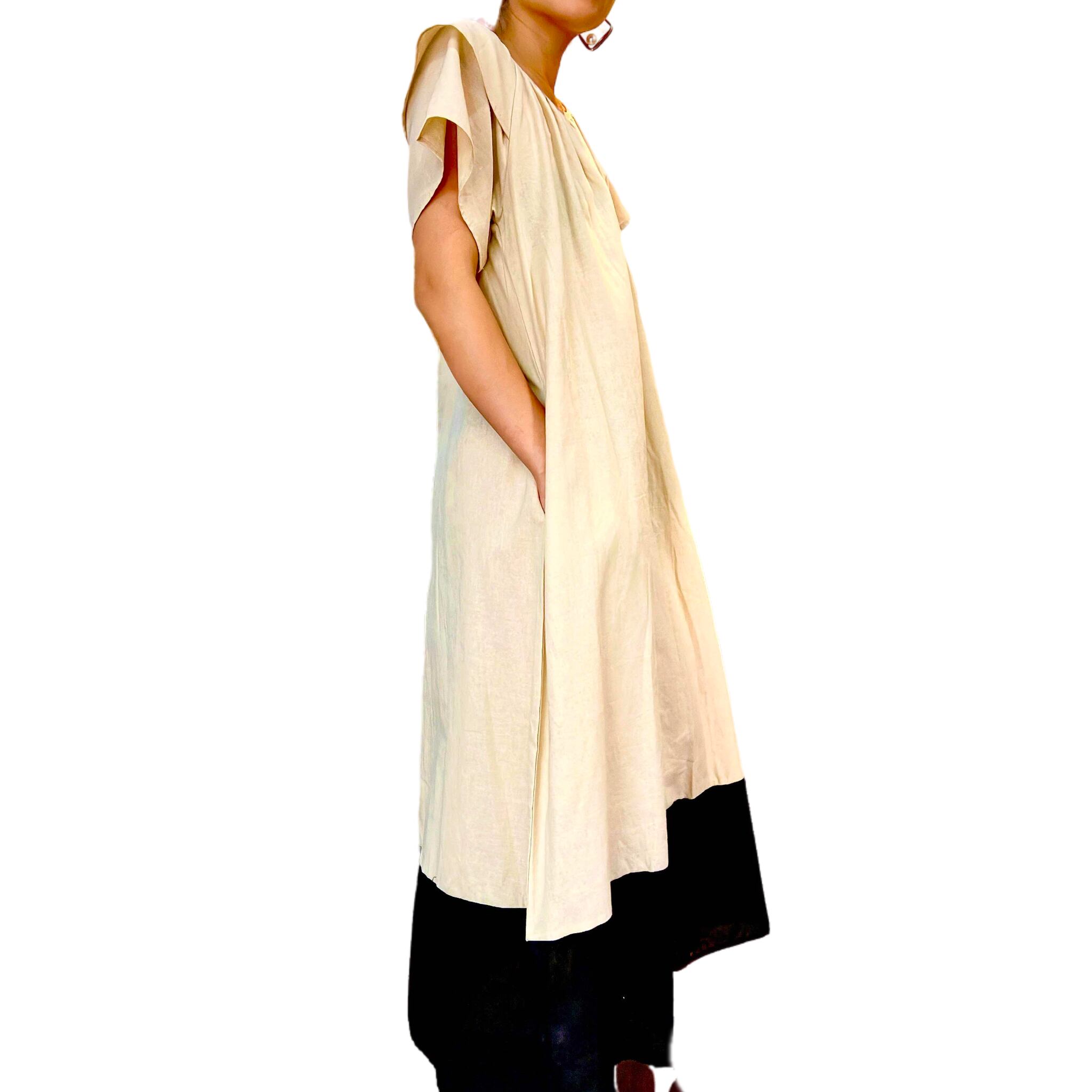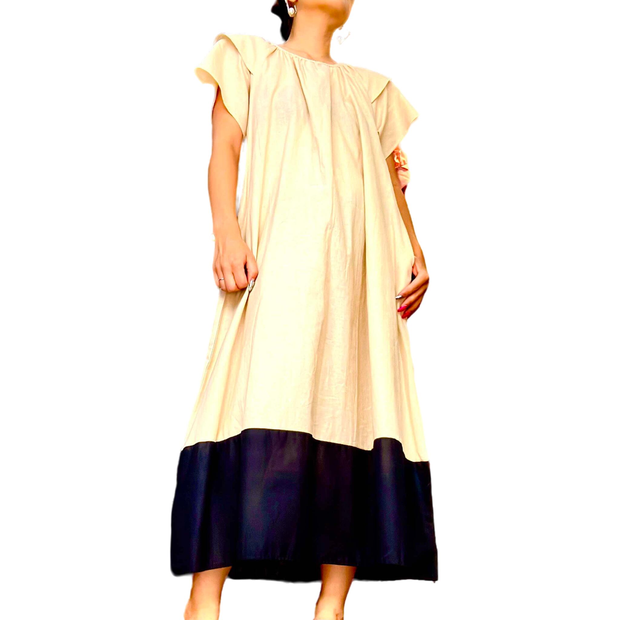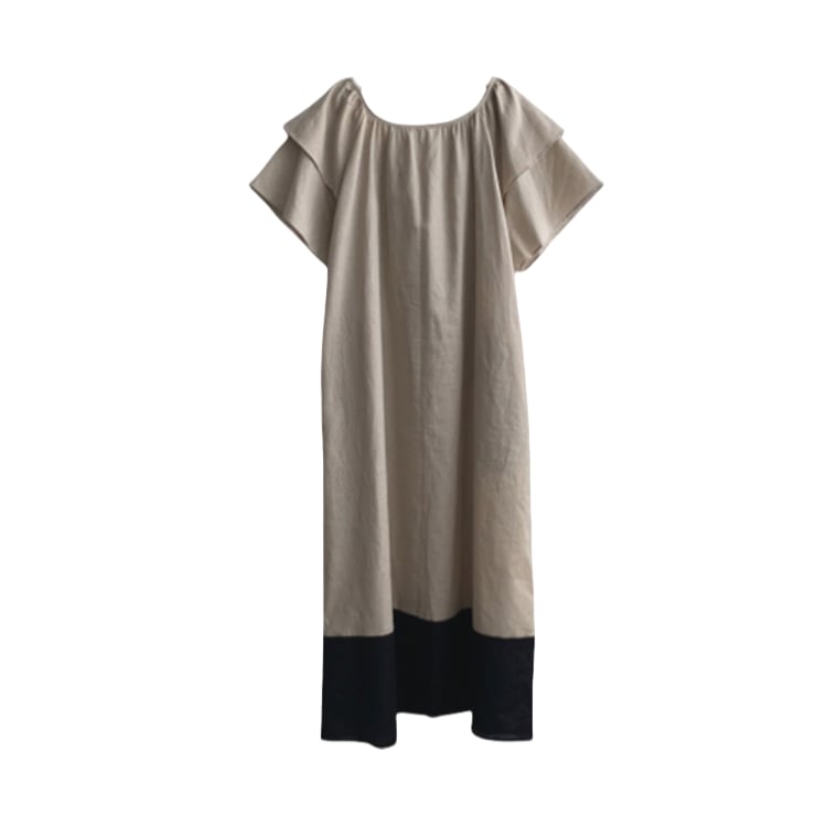 バイカラーフリルスリーブコットンワンピース
