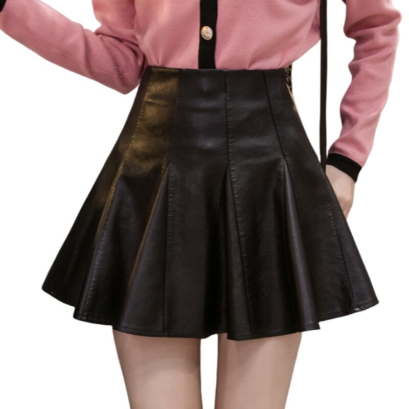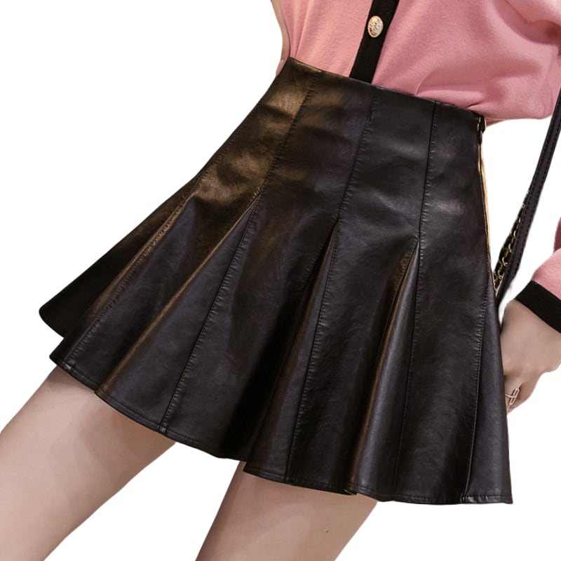 レザーフレアミニスカート