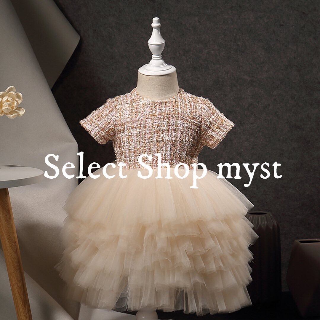 チュール切替ツイードワンピース