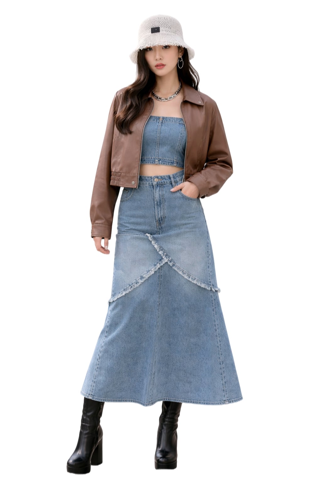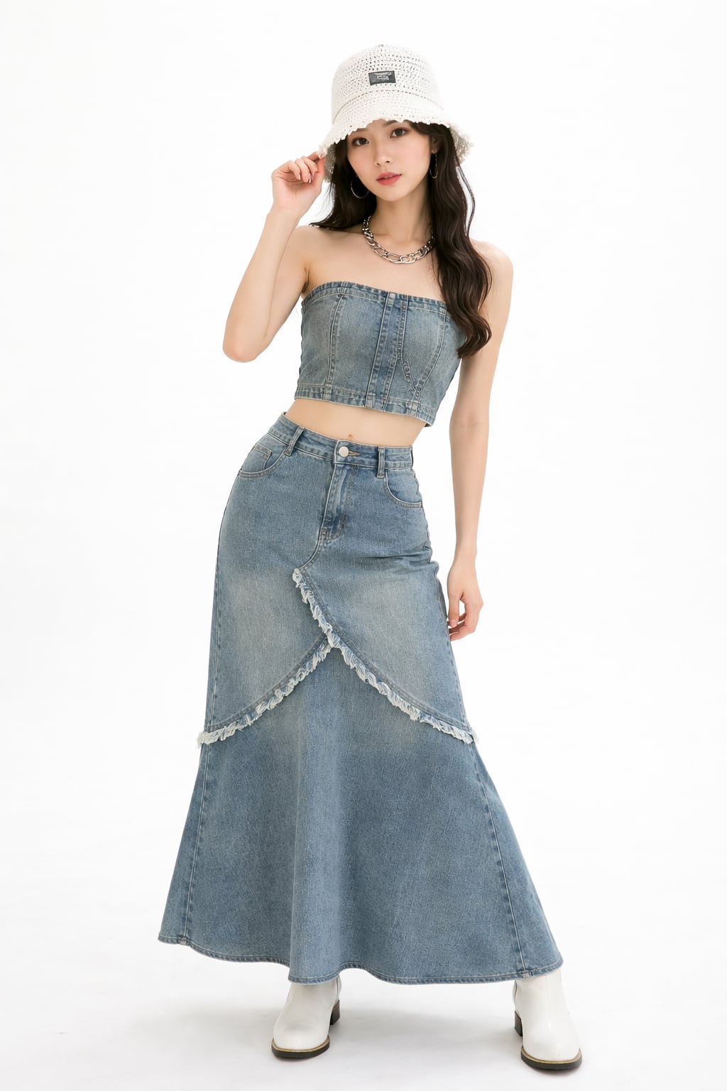 デニムビスチェ×スカートセットアップ