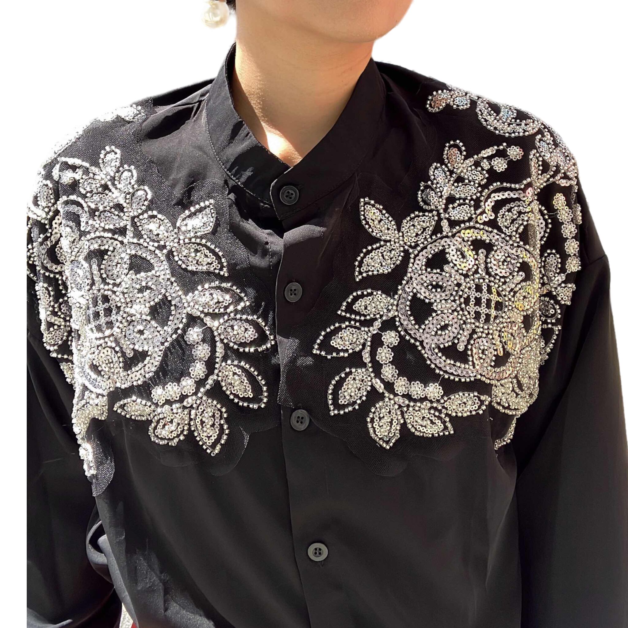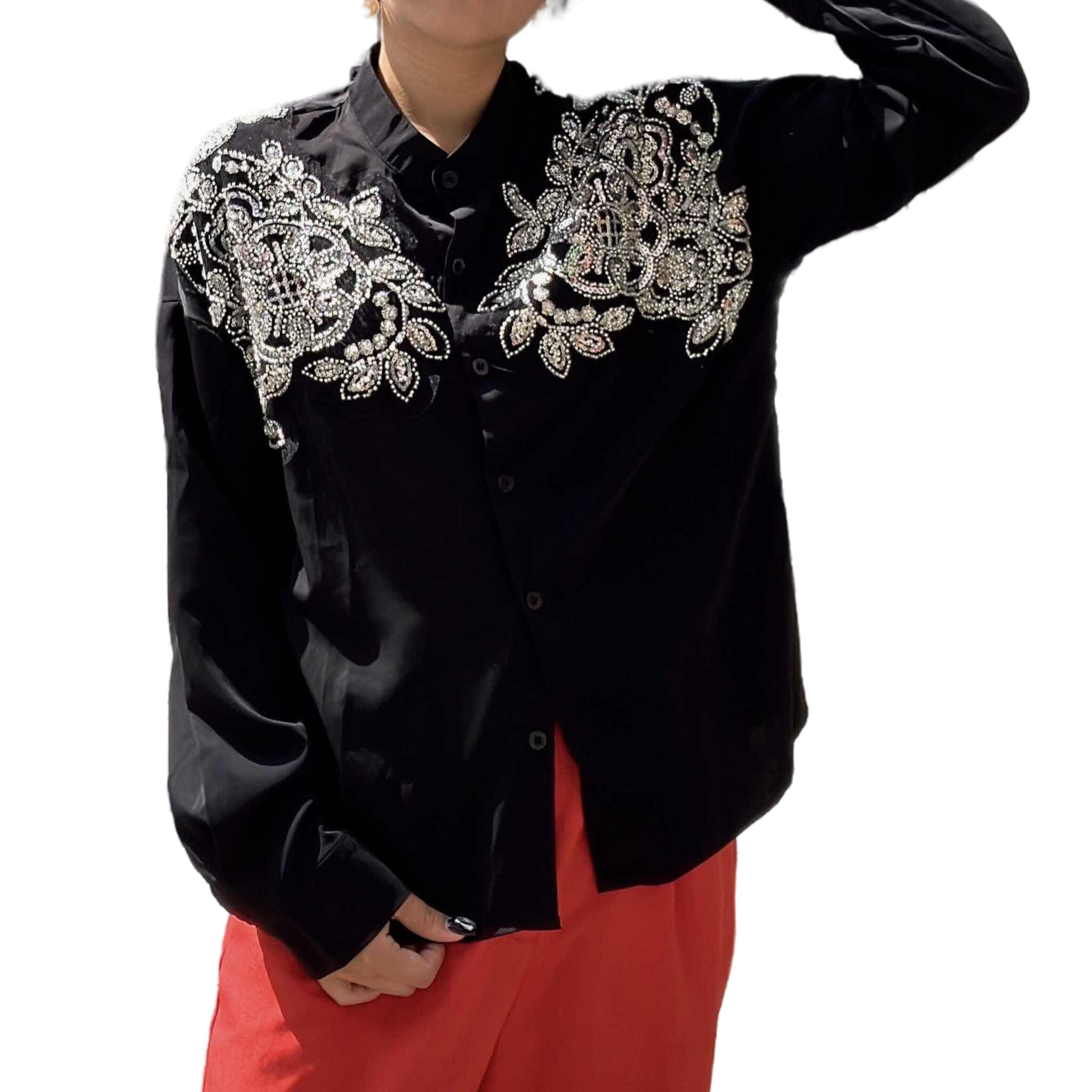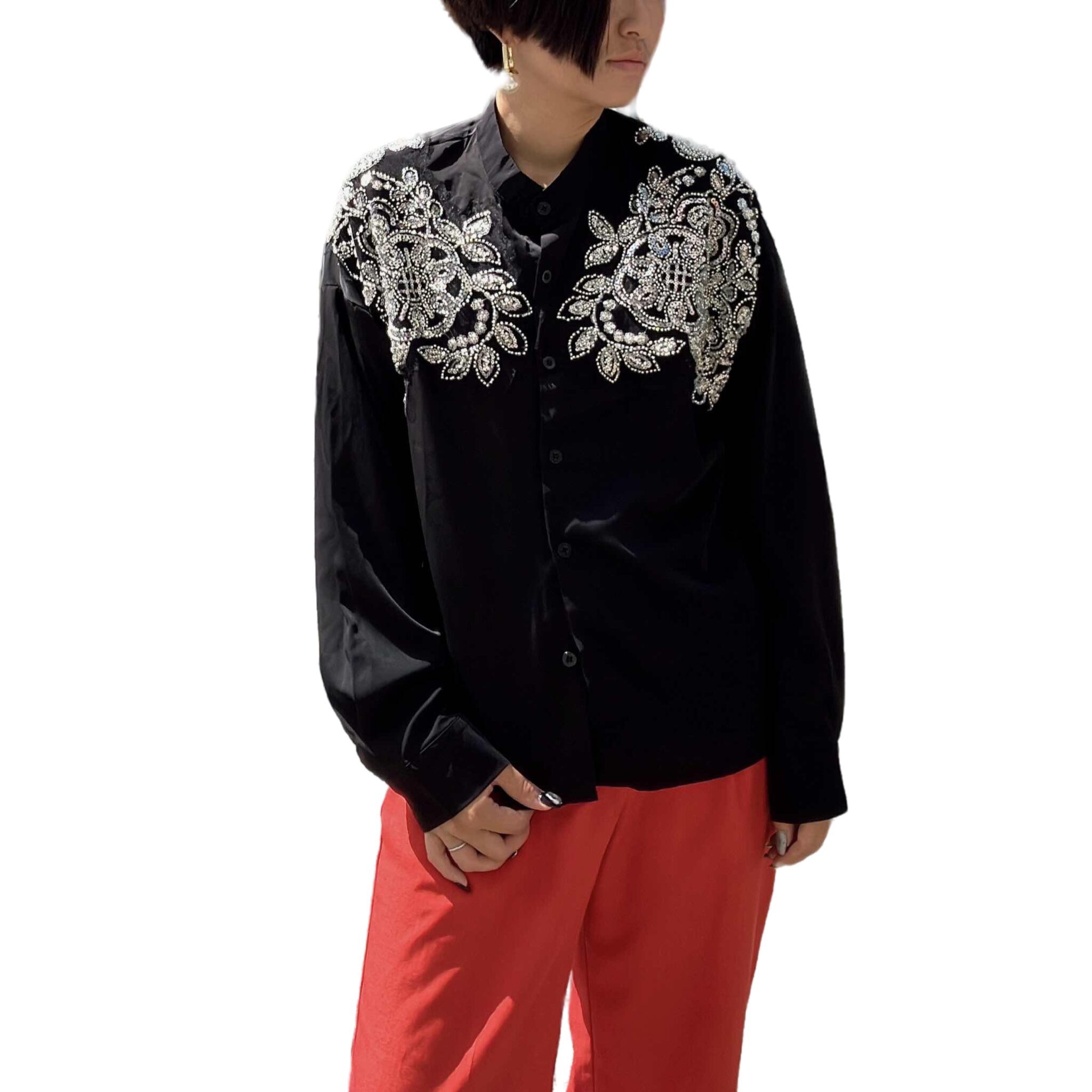 ノーカラービジューブラウス