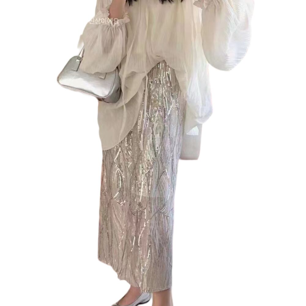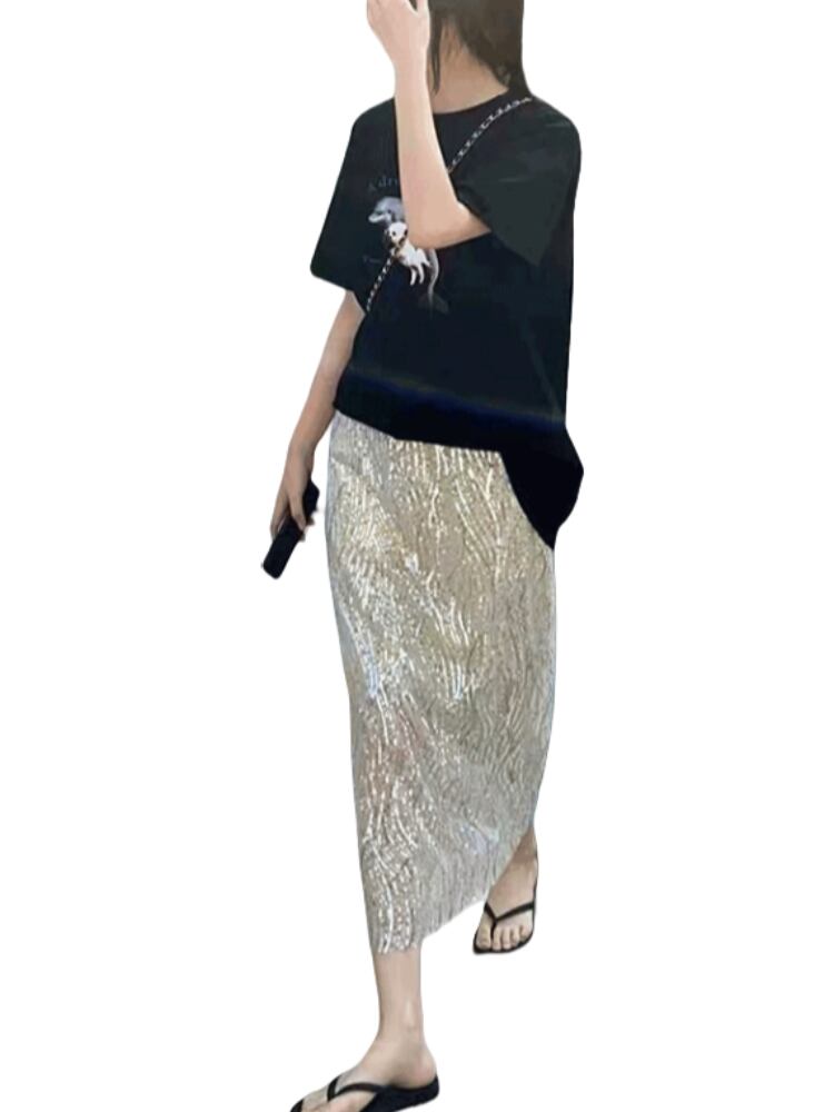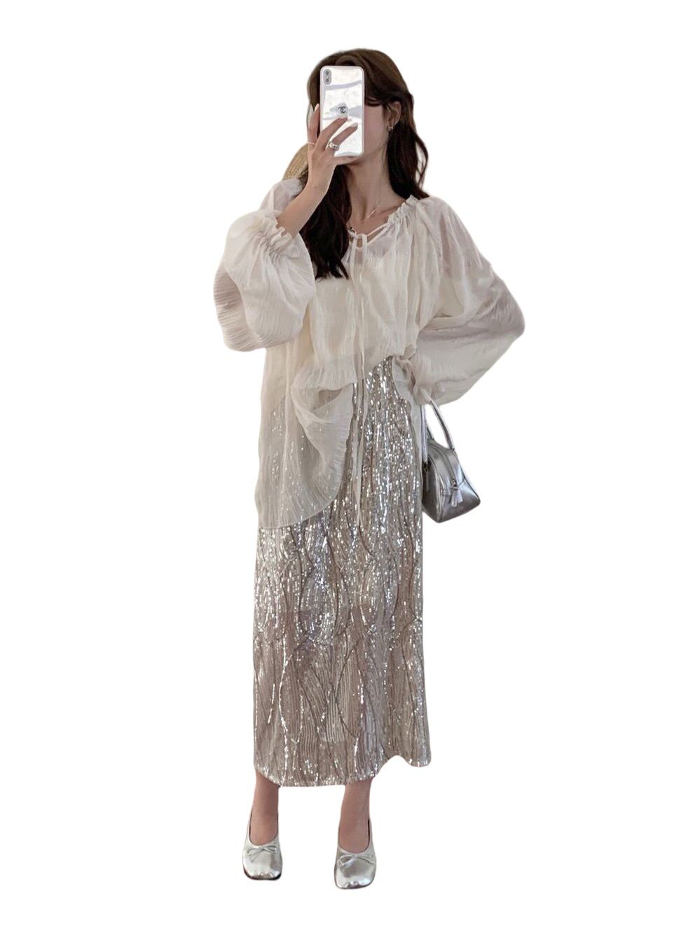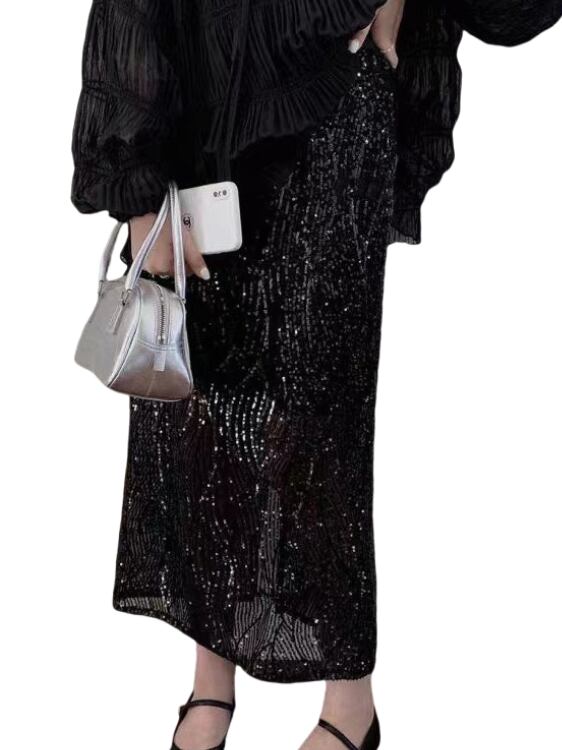 ウェーブ調のラインに今期流行のスパンコール素材で