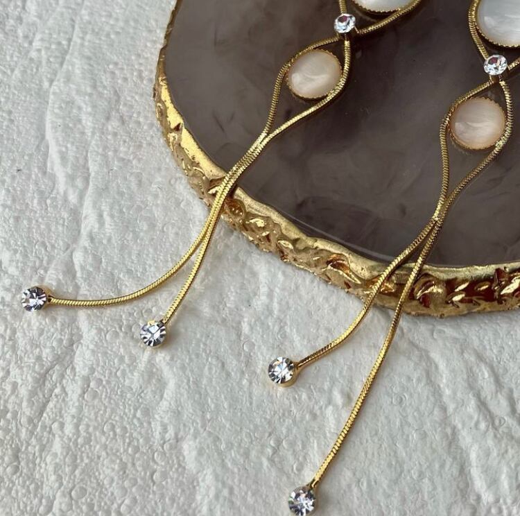 存在感抜群で視線を引き付ける 3連デザインが周囲と差を付けるアイテム♡ 程よい艶めきのオーロラストーンが 耳元に上品さをプラス♪ シャープなロングシルエットが フェイスラインをグッと引き締めてくれます♡ コーディネートに取り入れやすく 使い勝手も抜群です♫