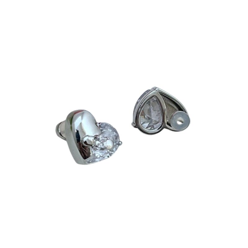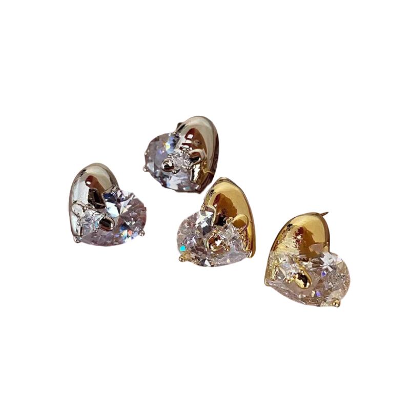 クリスタルとメタルのバイカラーデザインの 小ぶりなハートのピアスとなっております♫ どんなコーディネートにも マッチするのでおススメです♫ さりげなく女性らしさを演出してくれます♡