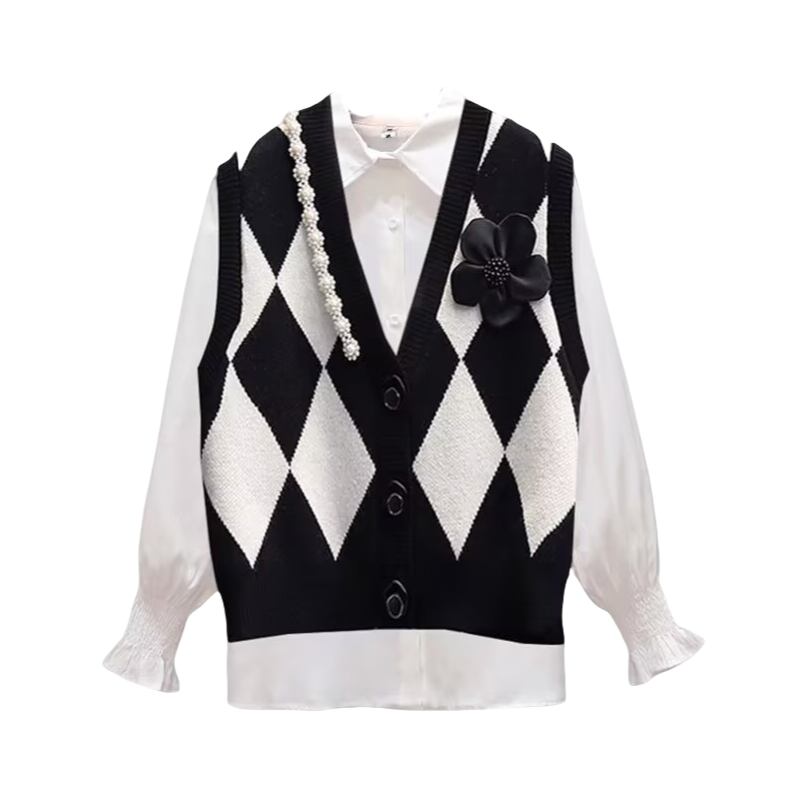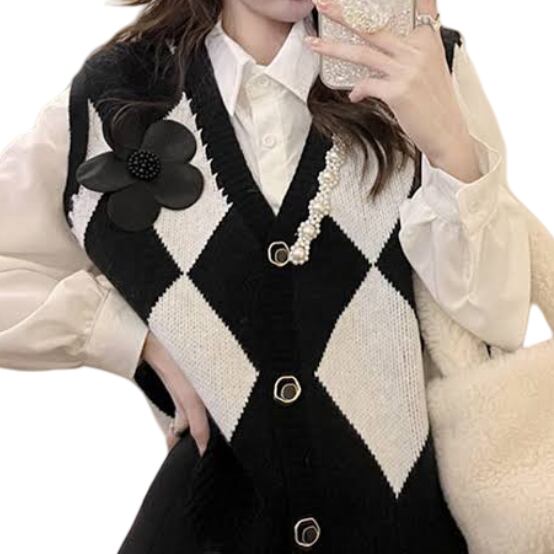 パール×フラワーアーガイルベスト