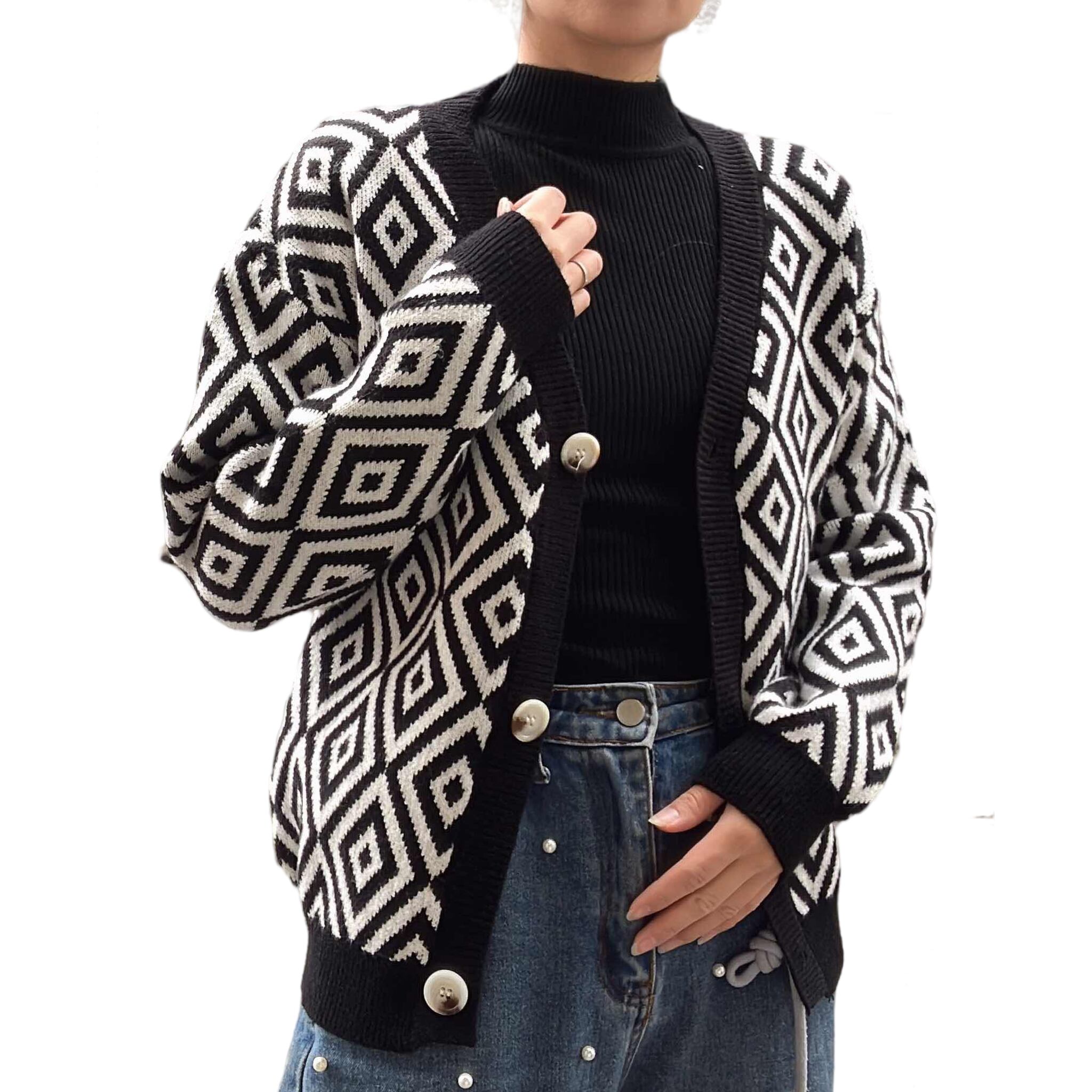 ジオメトリック柄カーディガン